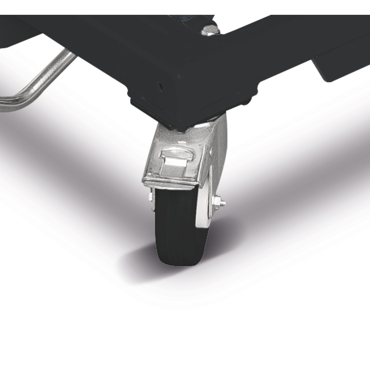 Anpassung des Tischs auf die gewünschte Arbeitshöhe durch Fußhydraulik Konstruktionsprinzip mit leichtgängigem Scherenmechanismus stellt sicher, dass die Plattform absolut parallel gehoben und gesenkt werden kann Einfach zu rangieren durch vier Lenkrollen mit einem Durchmesser von 125 mm Zwei Rollen mit Feststellern ausgestattet Unterschiedliche Arbeitsplatten auf den Grundrahmen montierbar, sichere Fixierung durch vier Steckbolzen