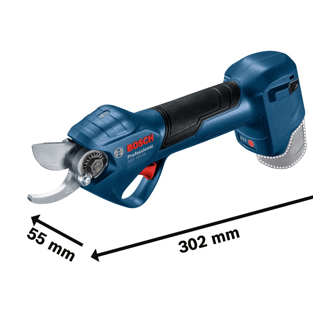- Diese Akku-Astschere ist ideal zum Schneiden von Sträuchern, Büschen und Obstbäumen. Die GGP 12V-25 Professional ist mit dem Bosch 12V Pro Akku kompatibel, sodass du sie problemlos in deinen bestehenden Werkzeugbestand integrieren kannst.