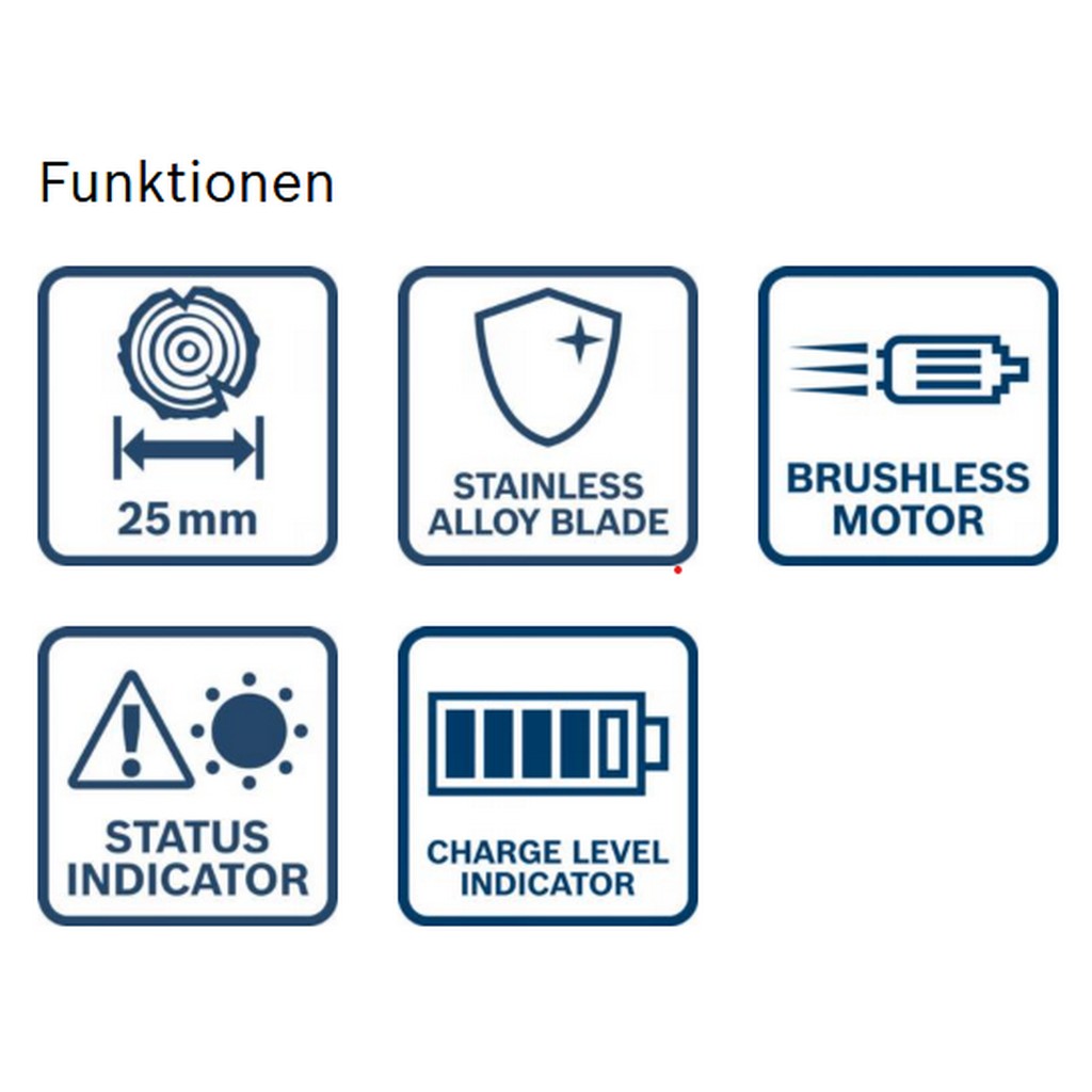 - Müheloses Schneiden von Ästen bis zu 25 mm mit einem kraftvollen bürstenlosen Motor