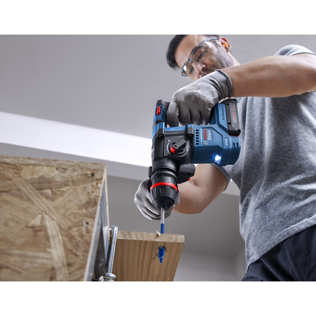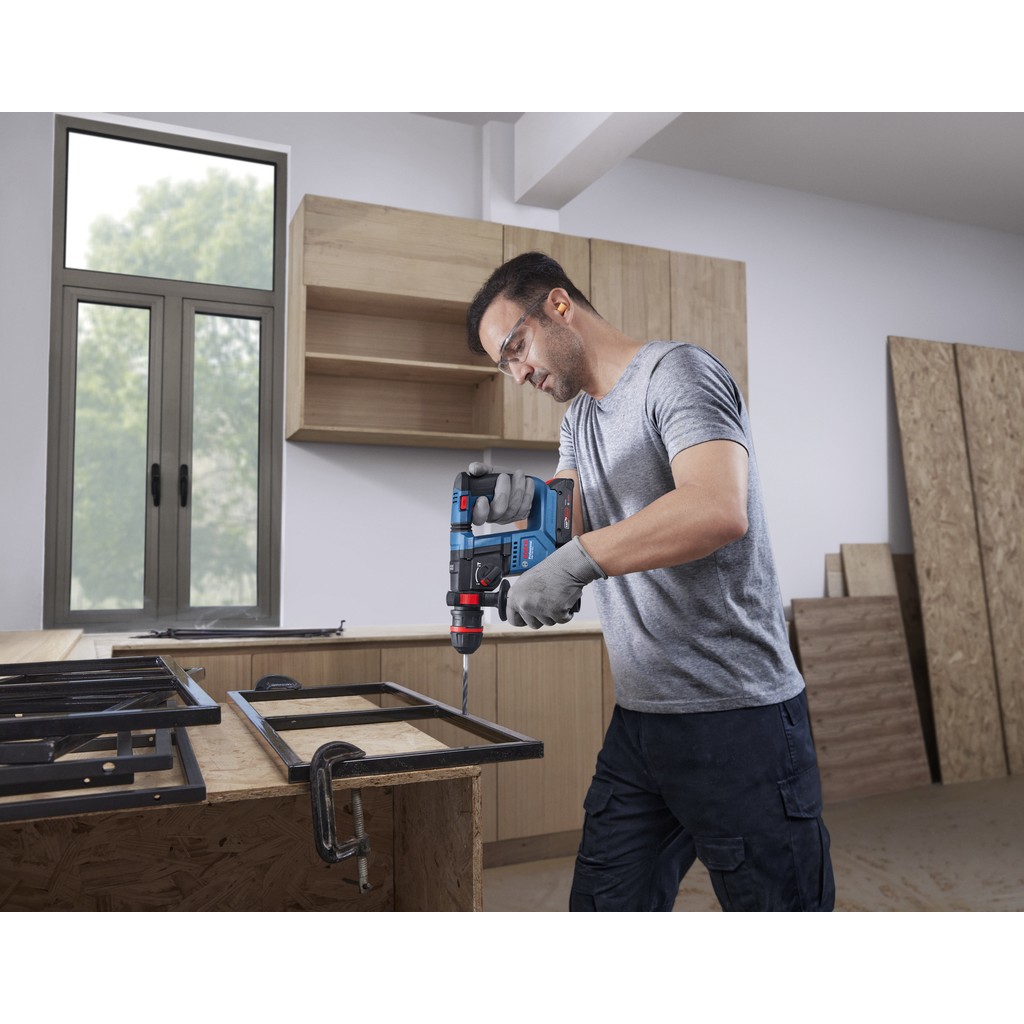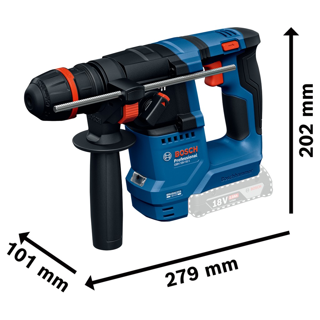- Der Bohrhammer Bosch GBH 18V-18 X Professional ist ideal für Handwerker wie Schrankbauer, Tischler, Glaser und Hausmeister, die mit Beton, Holz und Metall arbeiten. Er ist der leichteste Akku-Bohrhammer von Bosch Professional der 18V-Serie und liefert volle Leistung mit lediglich einem 18V-2,0-Ah-Akku.
