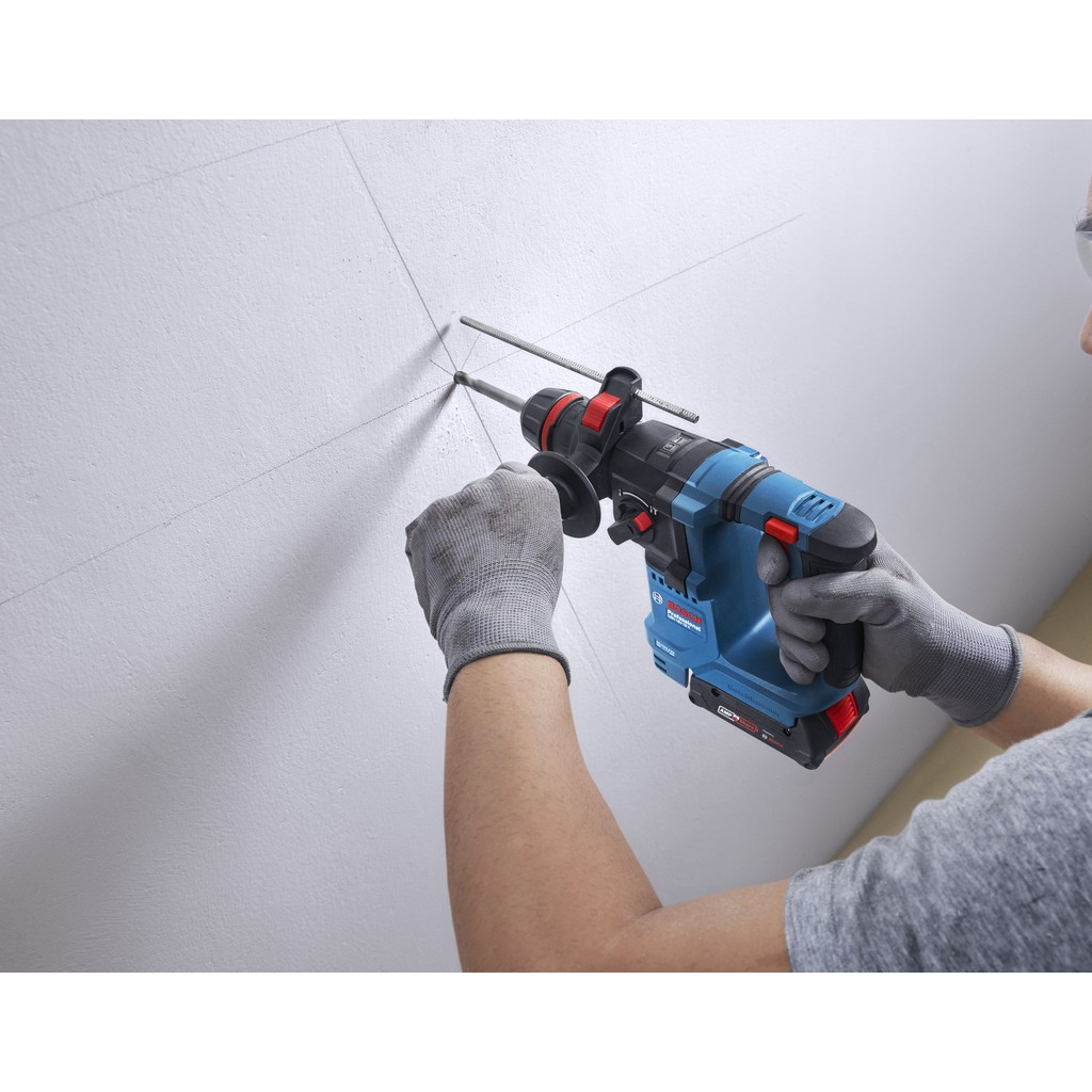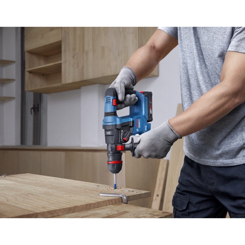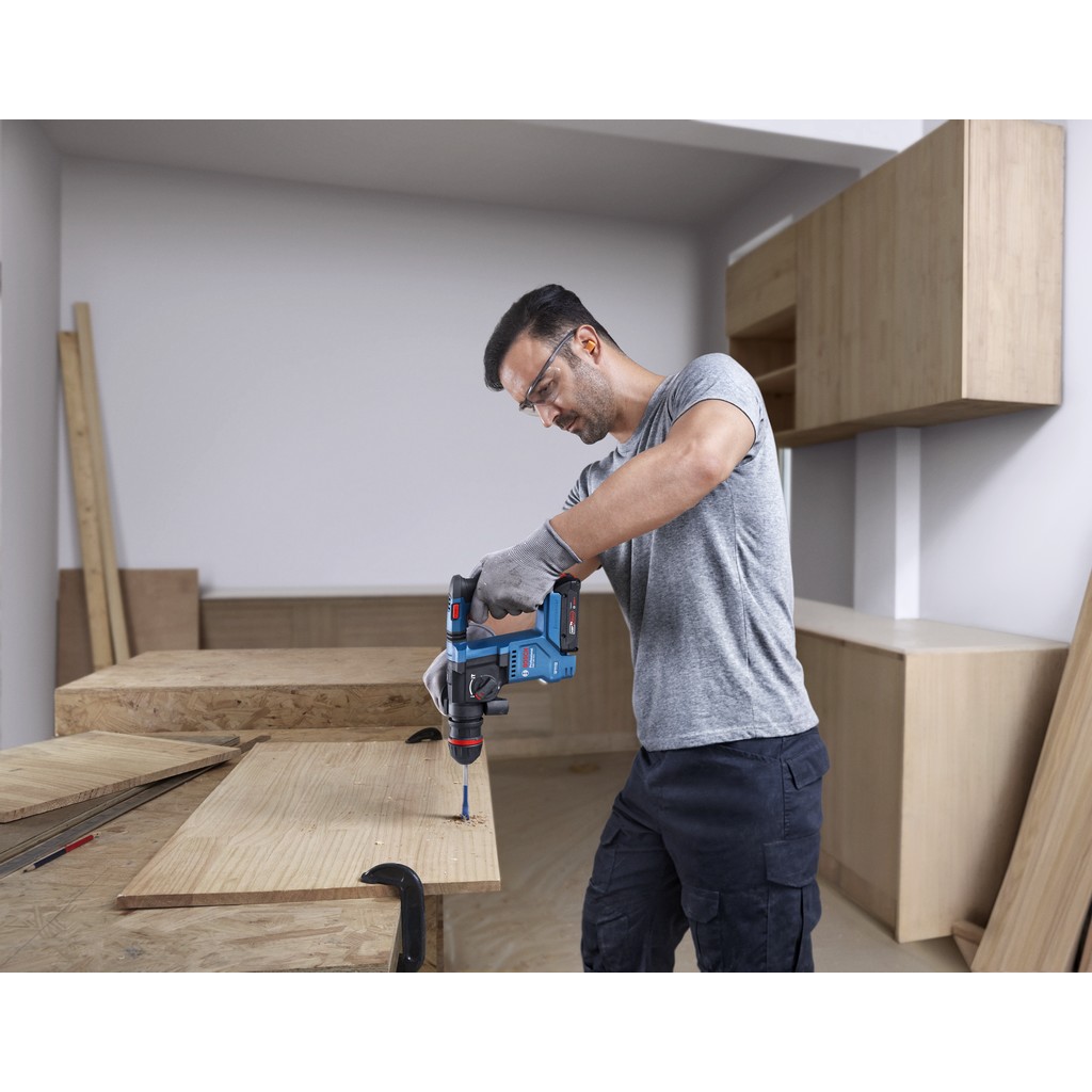- Der Bohrhammer Bosch GBH 18V-18 X Professional ist ideal für Handwerker wie Schrankbauer, Tischler, Glaser und Hausmeister, die mit Beton, Holz und Metall arbeiten. Er ist der leichteste Akku-Bohrhammer von Bosch Professional der 18V-Serie und liefert volle Leistung mit lediglich einem 18V-2,0-Ah-Akku.