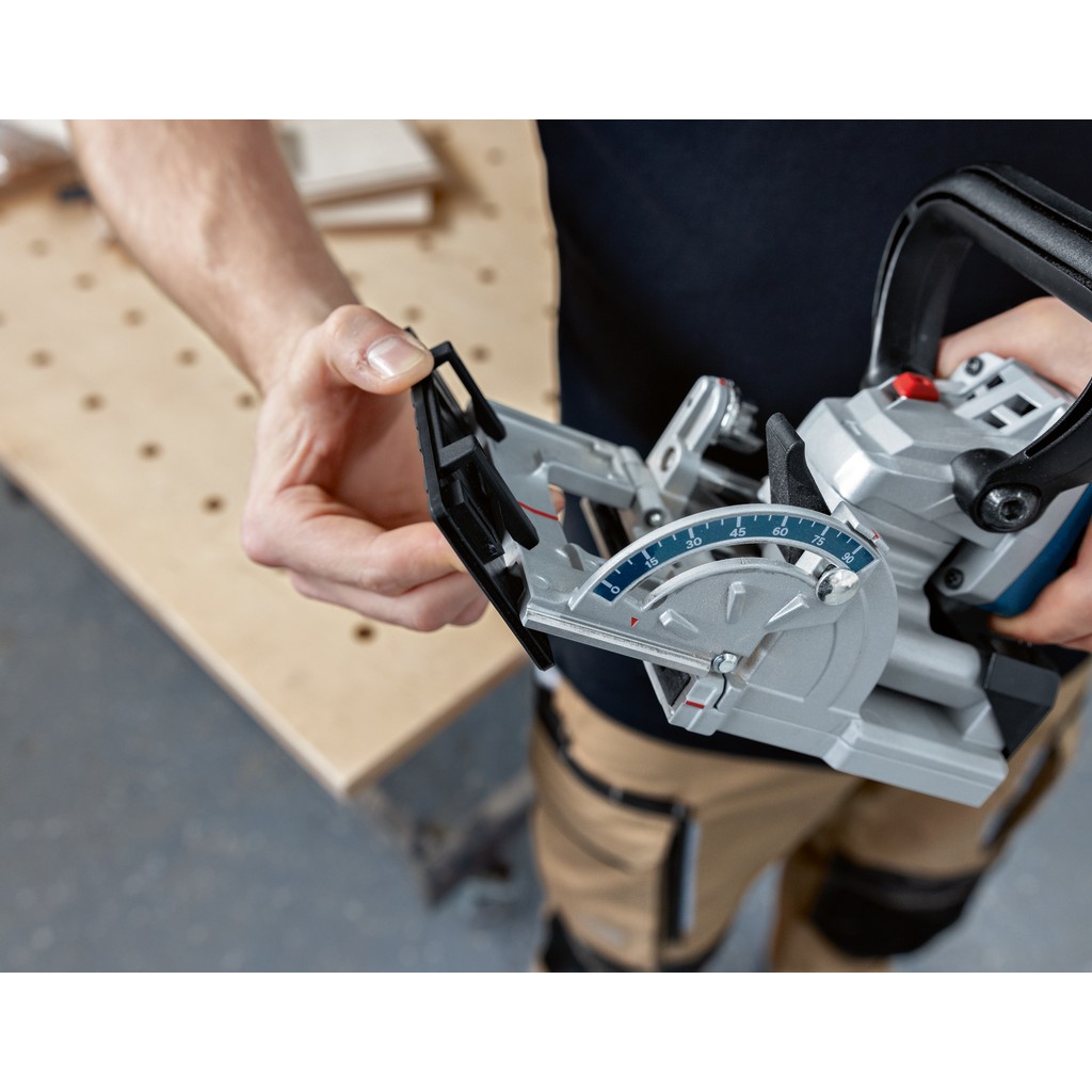 - Top Ergebnisse bei Tauchschnitten für halbmondförmige Schlitze in Holzwerkstücken, um Flachdübel zu platzieren. Mit diesem Werkzeug lassen sich zahlreiche Verbindungsarten erzeugen, einschließlich Eck-, Gehrungs-, Schräg-, Längs-, Quer-, Rahmen- und Mittelwandverbindungen in Holzwerkstücken aus Spanplatte, Hartholz, Weichholz, Sperrholz und Holzfaserplatte. Dieses Werkzeug funktioniert mit allen Scheibenfräsern mit einem Durchmesser bis zu 105 mm. Kompatibel mit dem Bosch Professional 18V System und mit der markenübergreifenden AMPShare Akku-Allianz.
