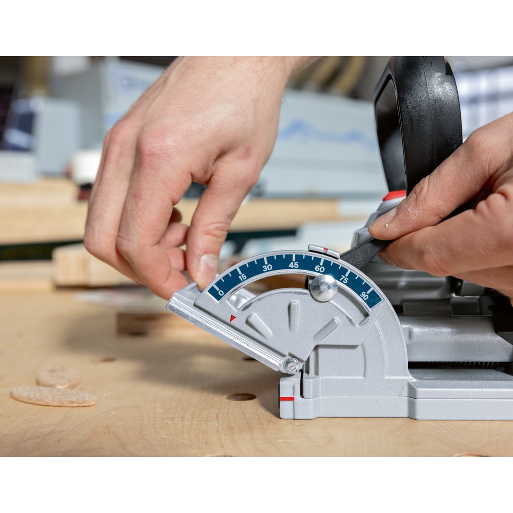 - Komfortabel und präzise dank variabler Einstellung von Schnitttiefe, -höhe und -winkel, leichtgängiger Tauchfunktion, Aluminium-Winkelanschlägen und Anzeige der Schnittposition