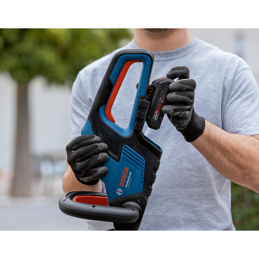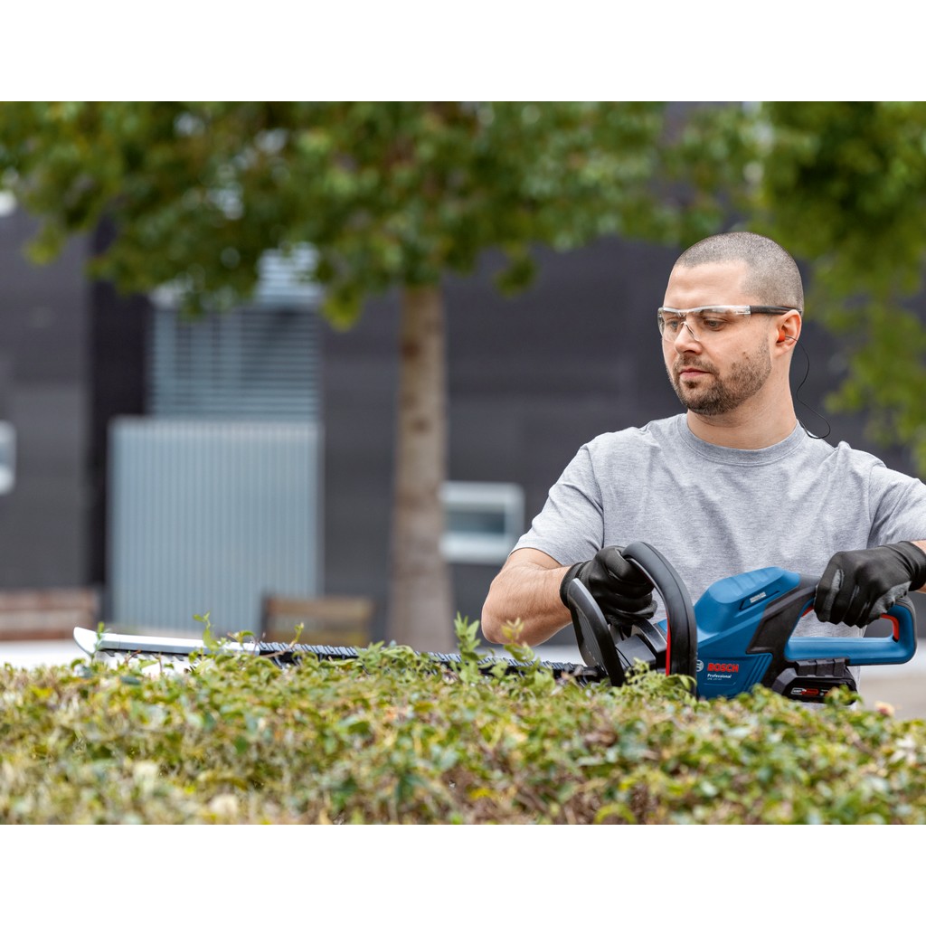 - Die Akku-Heckenschere GHE 18V-50 Professional ist dank ihres ergonomischen Designs leicht in der Handhabung. Der kraftvolle bürstenlose Motor sorgt für einen kontinuierlichen Schnitt bei mitteldichten Hecken. Mit einer Schnittleistung von 20 mm kannst du auch dickere Äste problemlos und bequem schneiden. Beim Trimmen von hartnäckigen Ästen verhindert das patentierte Bosch Anti-Blocking System ein Verklemmen der Schneidemesser, dank elektronischer Erkennung und automatischer Wiederholung des Schnitts. Aufgrund ihres geringen Gewichts, der optimalen Balance und ihres ergonomischen Designs eignet sich die Akku-Heckenschere gut für längere Arbeiten. Die geringe Lautstärke und der emissionsfreie Betrieb der Akku-Heckenschere machen sie zum idealen Werkzeug für Arbeiten in Wohngebieten oder anderen lärmsensiblen Bereichen.