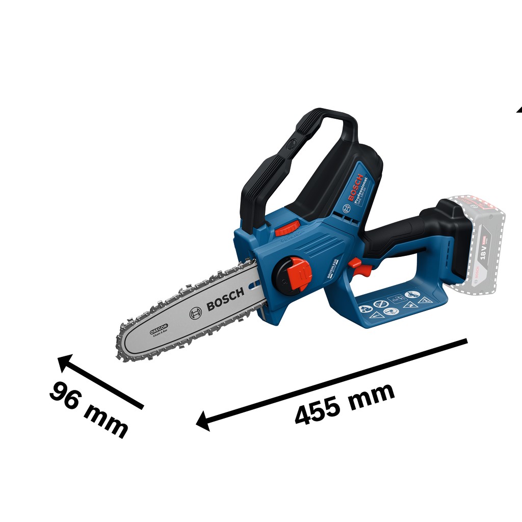 • Die Bosch Astsäge GKE 18V-20 Professional ist ideal für den Baumschnitt, das Entfernen dickerer Äste und das Schneiden auf der Baustelle bis 18 cm. Sie schneidet Weichholz, Hartholz, Äste, Balken und Bauholz. Sie ist kompatibel mit dem Bosch Professional 18V System und mit der markenübergreifenden AMPShare Akku-Allianz.