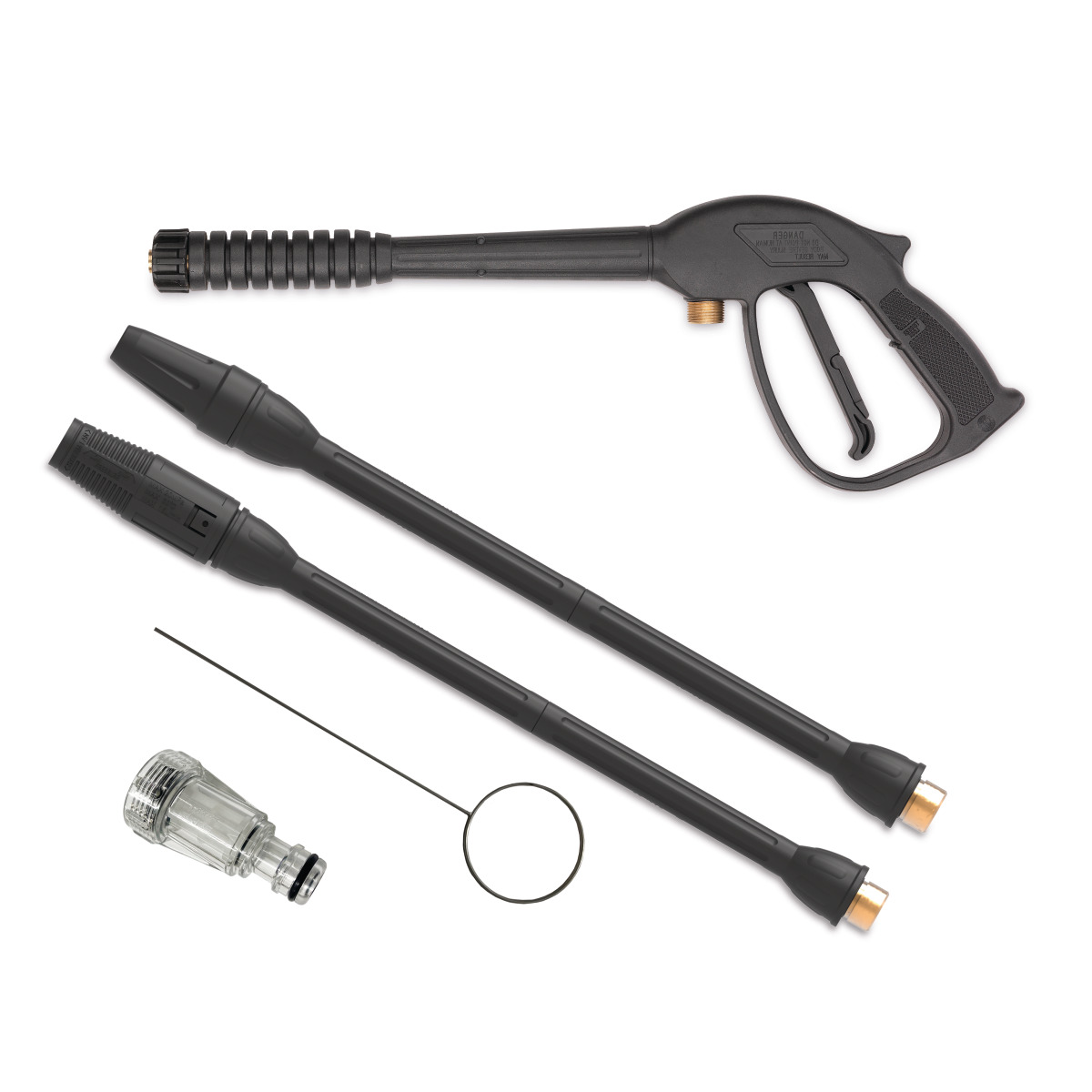 Fahrbares Modell mit zwei Rädern und Handgriff Einsteiger in die Induktionsmotor-Klasse Total Stop - Pumpensteuerung: Verzögerungsfreier Start und Stopp des Pumpenmotors beim Öffnen und Schließen der Pistole Sehr robuste 3-Kolben-Axialpumpe mit Messingkopf und Edelstahl-Kolben Erhöhte Lebensdauer des Pumpenkopfs durch automatisches Sicherheitsventil Integrierter Wasserfilter schützt die Pumpe vor Schmutzteilchen Schutz des Motors vor Überlastung durch Motorschutzschalter Praktische Halterungen für Handspritzpistole, Strahlrohr, Hochdruckschlauch und Netzkabel Abriebfester Hochdruckwasserschlauch Betrieb mit einem Wassertank oder ähnlichem möglich – Der HDR-K ist bis 0,5 m Tiefe selbstansaugend.