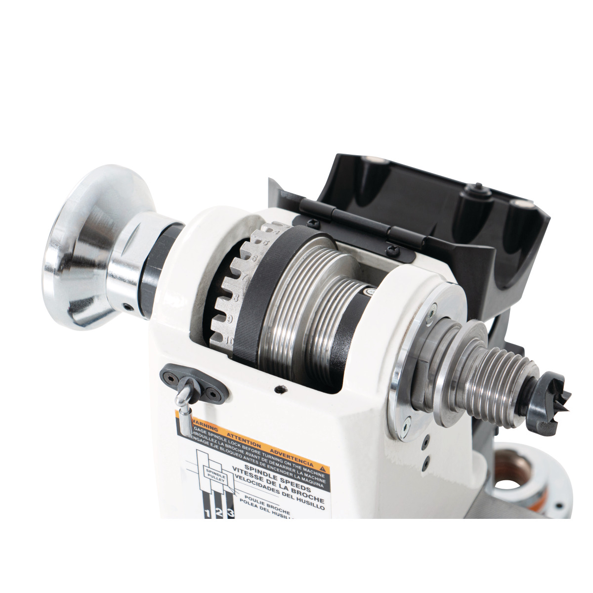 Massives Grauguss-Bankbett für eine hohe Laufruhe ASR-Ablaufsicherungsnut für maximale Sicherheit bei der Spannmittelbefestigung Komfortables Arbeiten dank stufenloser Drehzahlverstellung Ausgestattet mit drehzahlgeregelten DC brushless Motor Flexibles Arbeiten dank mobiler Bedienbox mit Magnethalterung, beliebig positionierbar Digitale Drehzahlanzeige und Umschaltung Rechts- und Linkslauf über die Bedienbox Praktische 24 Schritt Teileinrichtung der Spindel für exaktes platzieren von z.B. Bohrungen oder Fräsungen Auch als Standmaschine nutzbar dank optionalem Untergestell