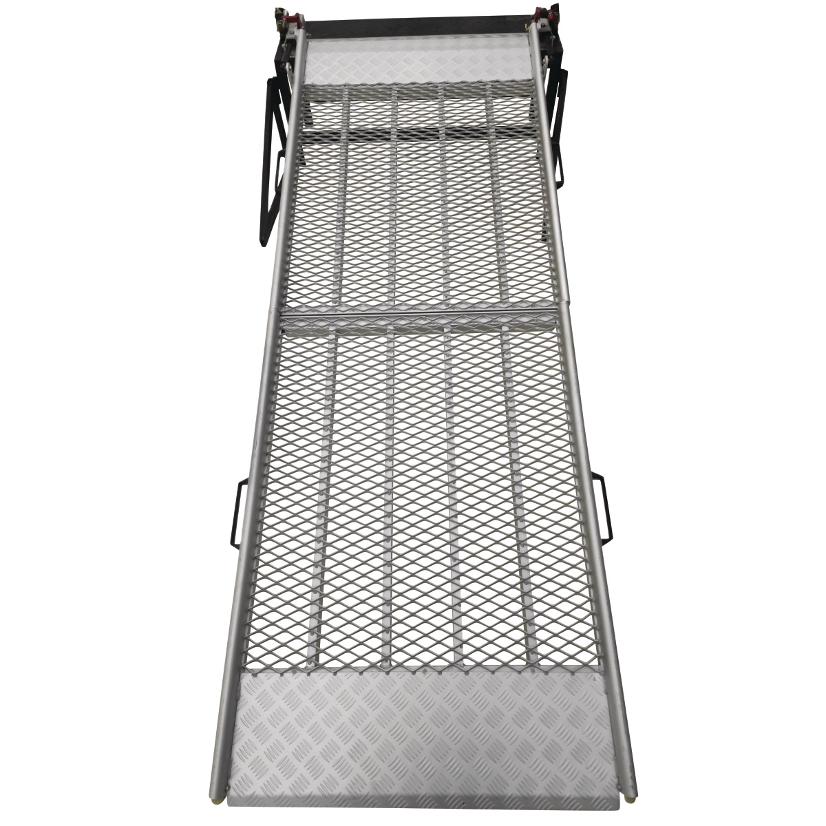 Einfache Bedienung mit geringem Kraftaufwand durch Gasdruckfedern Einfache Montage dank der Adapterplatte Praktische Klappkonstruktion vereint Robustheit und Funktionalität Ergonomische Haltegriffe für maximalem Komfort und einfache Handhabung Rand sorgt für Sicherheit beim Befahren Abgeflachte Auflage vereinfacht das Beladen Geriffelte Trittoberfläche sorgt für sicheren Halt und Rutschsicherheit Geringes Eigengewicht Geeignet für Motorrad, Trolley, Rollstühle, Fracht, Ausrüstung