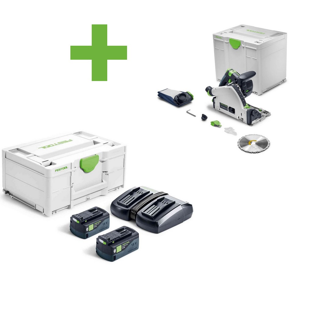 Festool Akku-Tauchsäge TSC 55 KSEB-Basic + Energie-Set SYS 18V 2x5,0/TCL6DUO