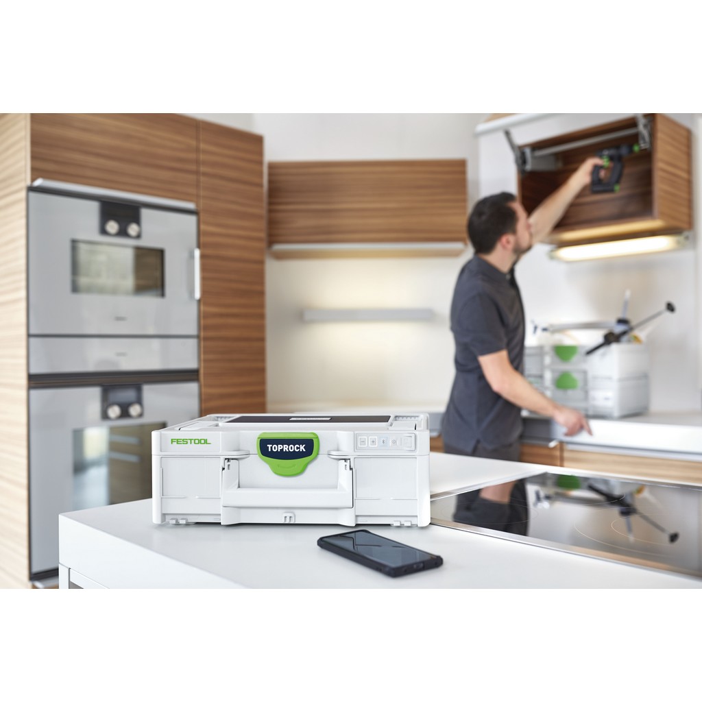 Das neue Bandmitglied in der Festool Sound-Familie heißt TOPROCK. Der Bluetooth® Lautsprecher im Systainer³-Deckel vereint alle Vorteile des Festool Systainer-Systems mit hervorragendem Klang. Vier Hochleistungslautsprecher sorgen in Kombination mit der clever designten Resonanzkammer für einen klaren und voluminösen Sound. Sie wollen noch mehr? Dann verbinden Sie doch einfach zwei TOPROCK mit Ihrem Smartphone und genießen raumfüllenden Stereo-Sound.