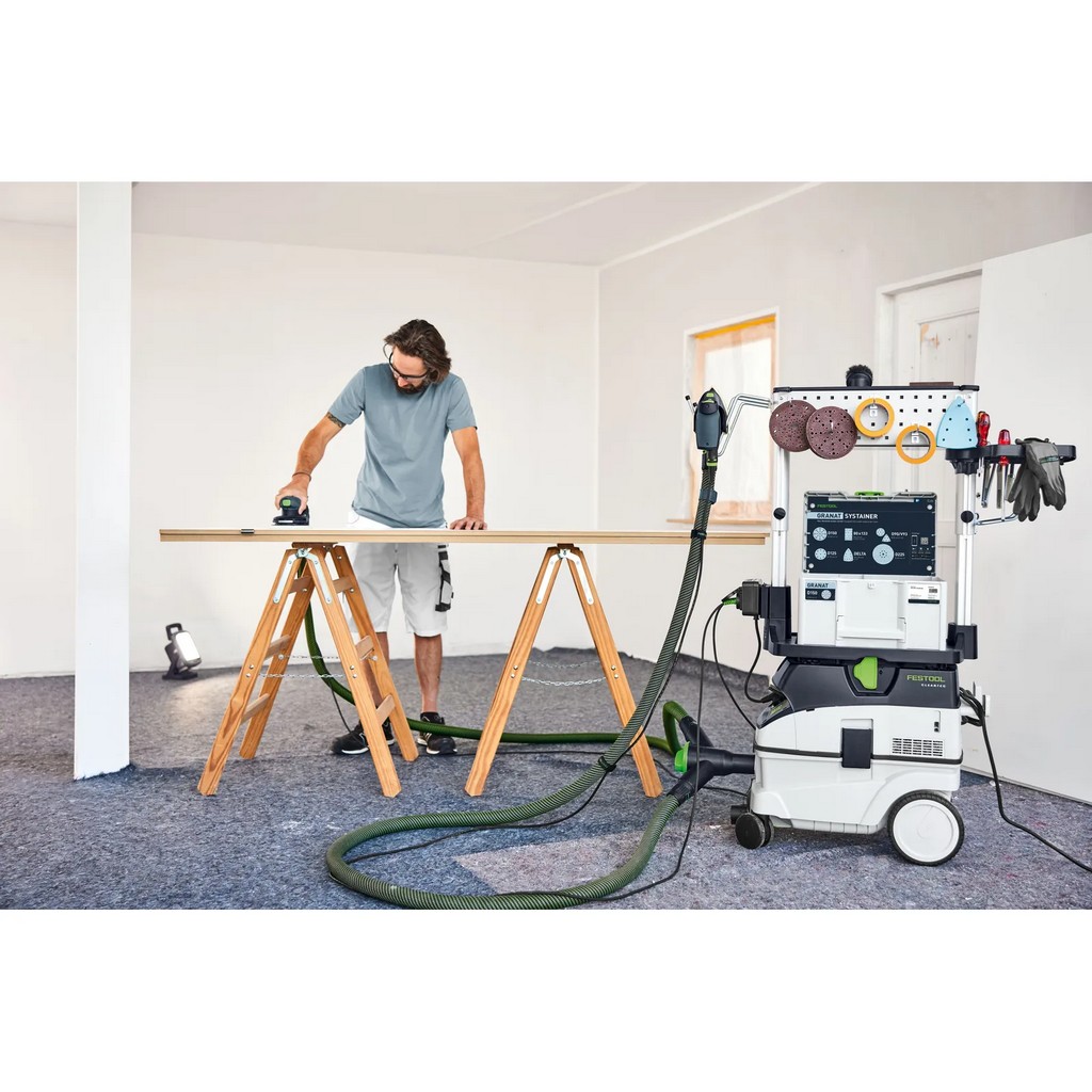 - Sauber im System: Kompatibel mit vielen Festool Saugermodellen sowie zahlreichen Zubehören wie Absaugarm, Steckdosenmodul oder Workcenter