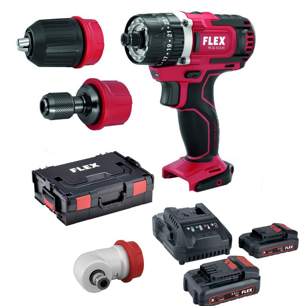 Flex Akku-Bohrschr PD 2G 418013 + Winkelvorsatz WV 10.8 EC + P-Set 22 Q - Akku