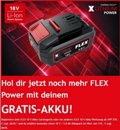 Hol dir jetzt noch mehr FLEX Power mit deinem GRATIS-AKKU! (Max. 5 Stück pro Person)