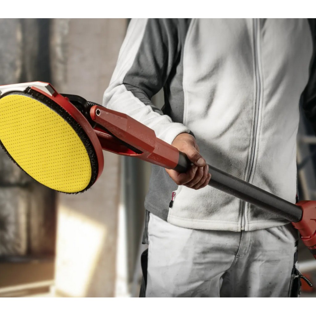 • Diese außergewöhnlich leichte Maschine bietet einen einzigartigen Bedienkomfort. Der Wand- und Deckenschleifer ist optimal ausbalanciert, was eine perfekte Führung ermöglicht, da das Gewicht gleichmäßig über den Schleifer verteilt ist. Die Handhabung ist äußerst angenehm dank des ergonomisch geformten Führungsrohrs aus Carbon sowie der Softgripeinlage an Haupt- und Spatenhandgriff