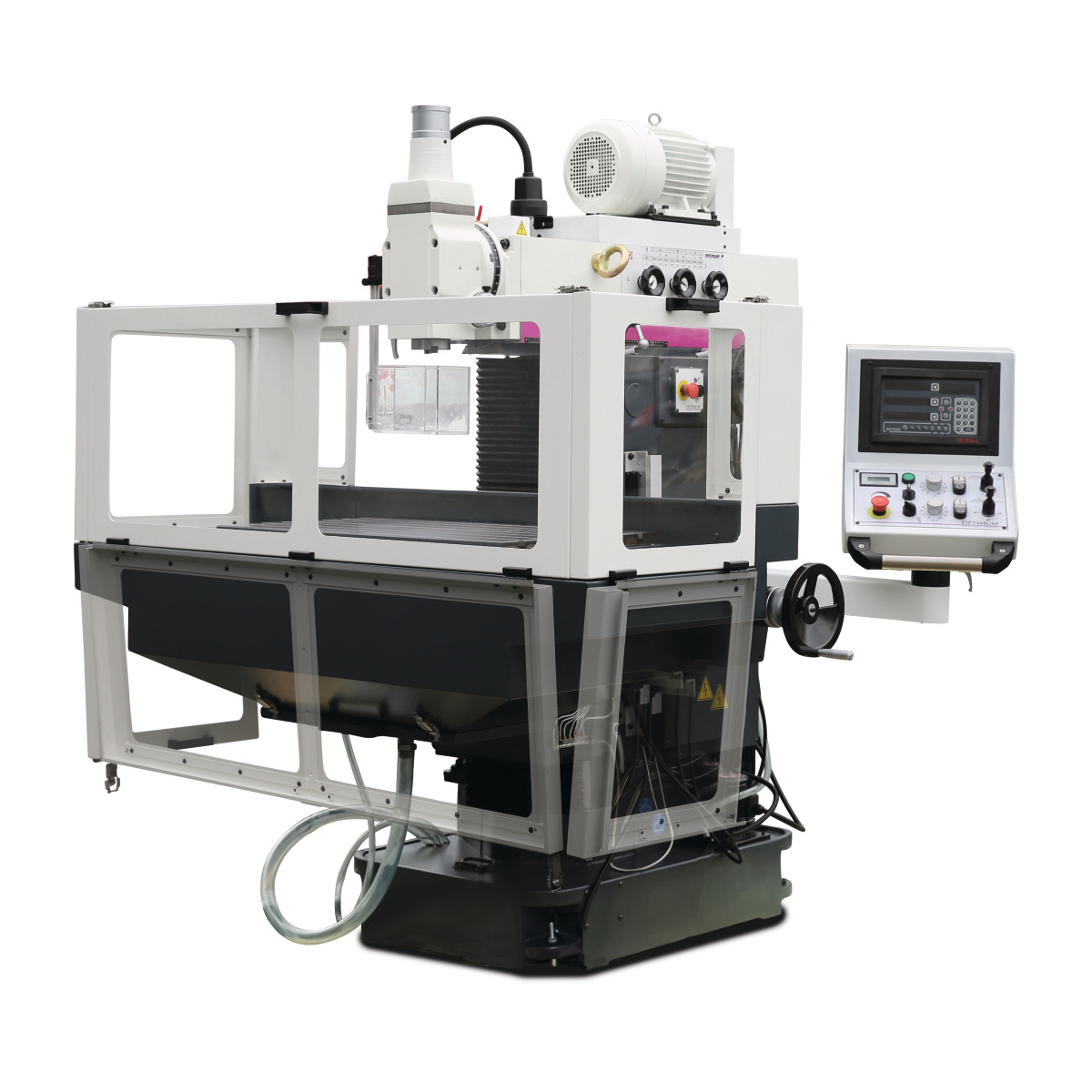 Vielseitiger Anwendungsbereich Hervorragende Dämpfungseigenschaften und Stabilität des Maschinengestells Alle Führungen gehärtet und präzisionsgeschliffen und durch Keilleisten nachstellbar Automatischer Vorschub in X-, Y- und Z-Achse, über einen elektronischen Joystick am Bedienpanel stufenlos einstellbar Elektrische Vorschubendabschaltung Kugelumlaufspindel in allen Achsen Zentral und übersichtlich angeordnetes Bedienpanel mit integrierter digitaler Positions- und Drehzahlanzeige Massiver Kreuztisch, groß dimensioniert und präzise oberflächenbearbeitet mit 5 T-Nuten Kühlmitteleinrichtung Groß dimensionierte Handräder mit Skala Maschinenlampe Ruhiger Lauf Automatische Zentralschmierung