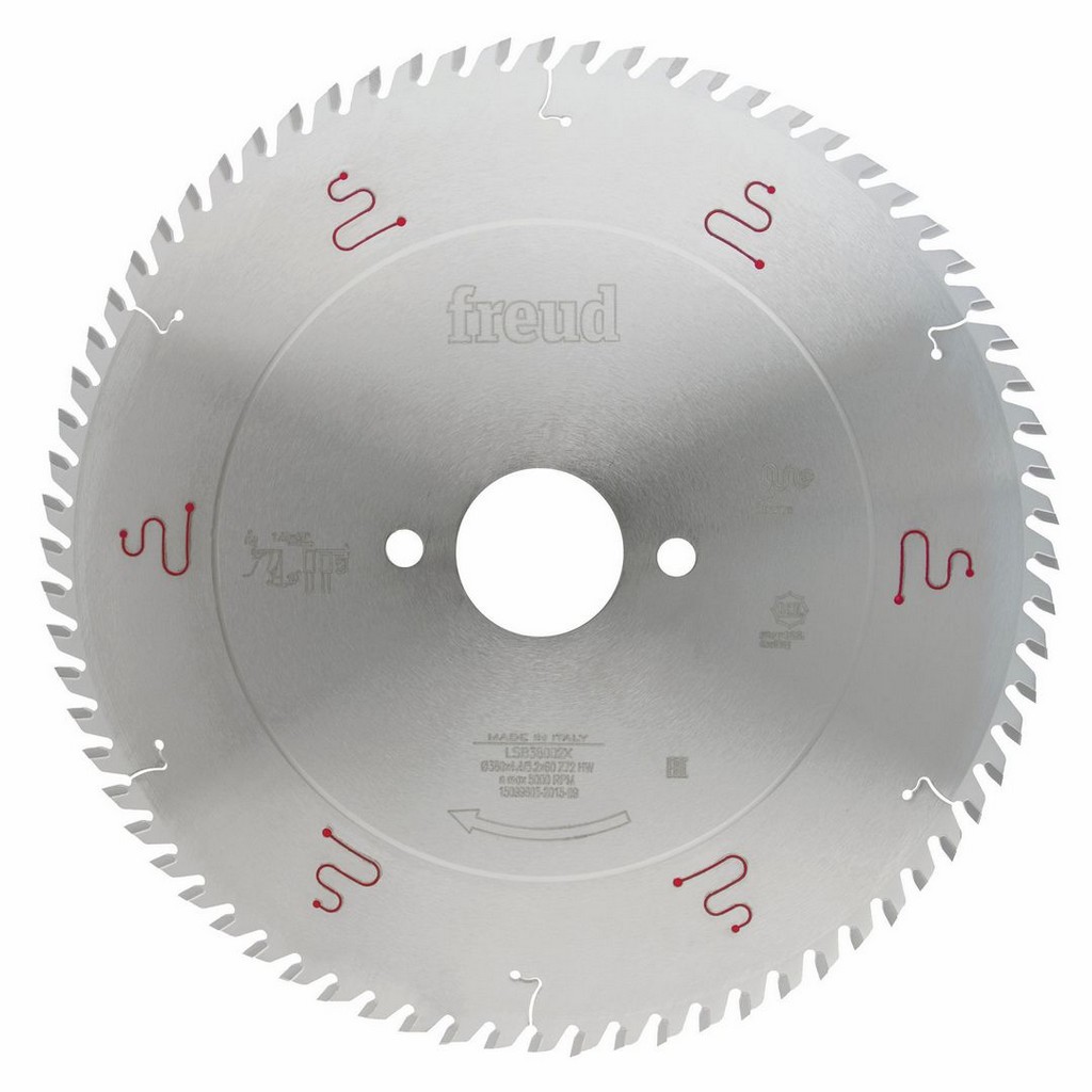- Silver I.C.E. Coating: Eine leistungssteigernde und korrosionshemmende Beschichtung zum Absenken der Sägeblatttemperatur während des Arbeitsprozesses. Die Antihaftwirkung verbessert den Spanauswurf und reduziert Harzablagerungen deutlich, was zu einer wesentlich geringeren Reibung und einer längeren Lebensdauer des Sägeblatts führt.