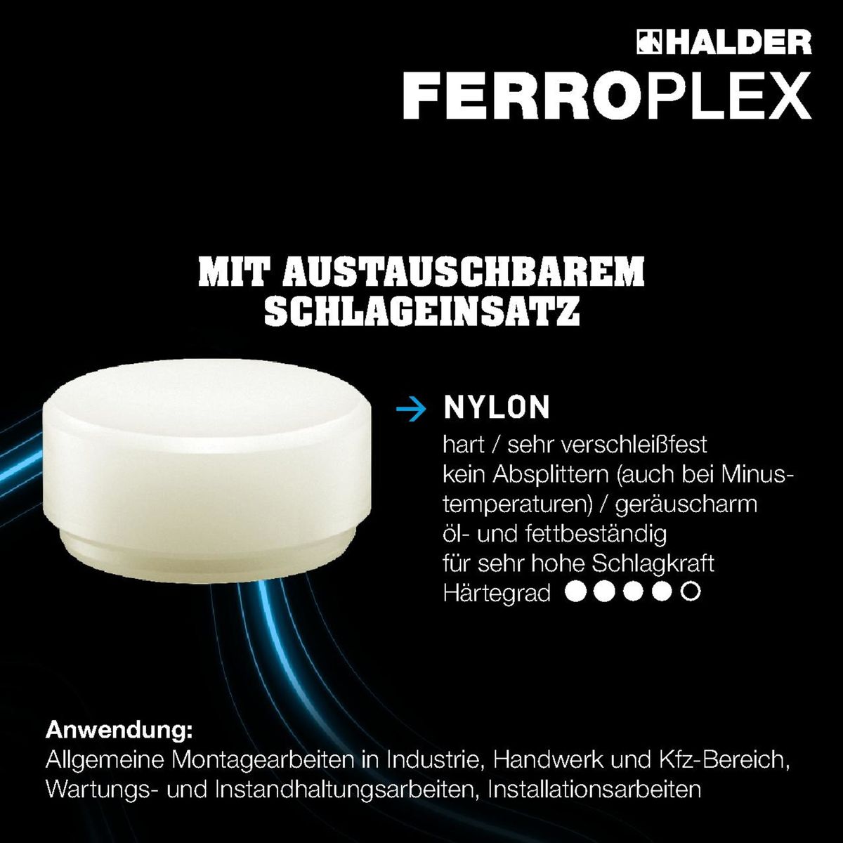 • Mit Stahlrohrstiel und ergonomisch geformtem Gummigriff, Hammerkopf aus hochwertigem Vergütungsstahl, einseitig induktiv gehärtet, Gegenseite mit austauschbarem Nylon-Schlageinsatz