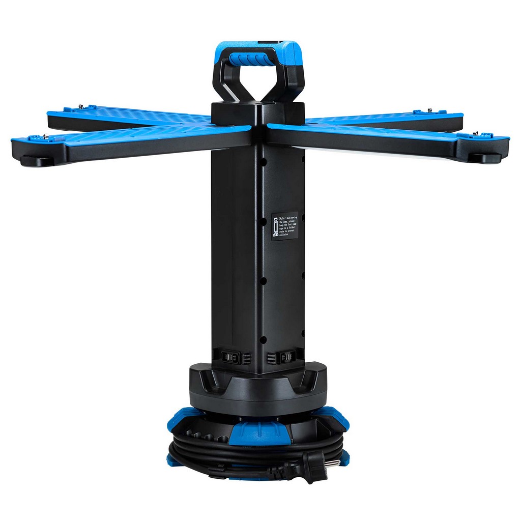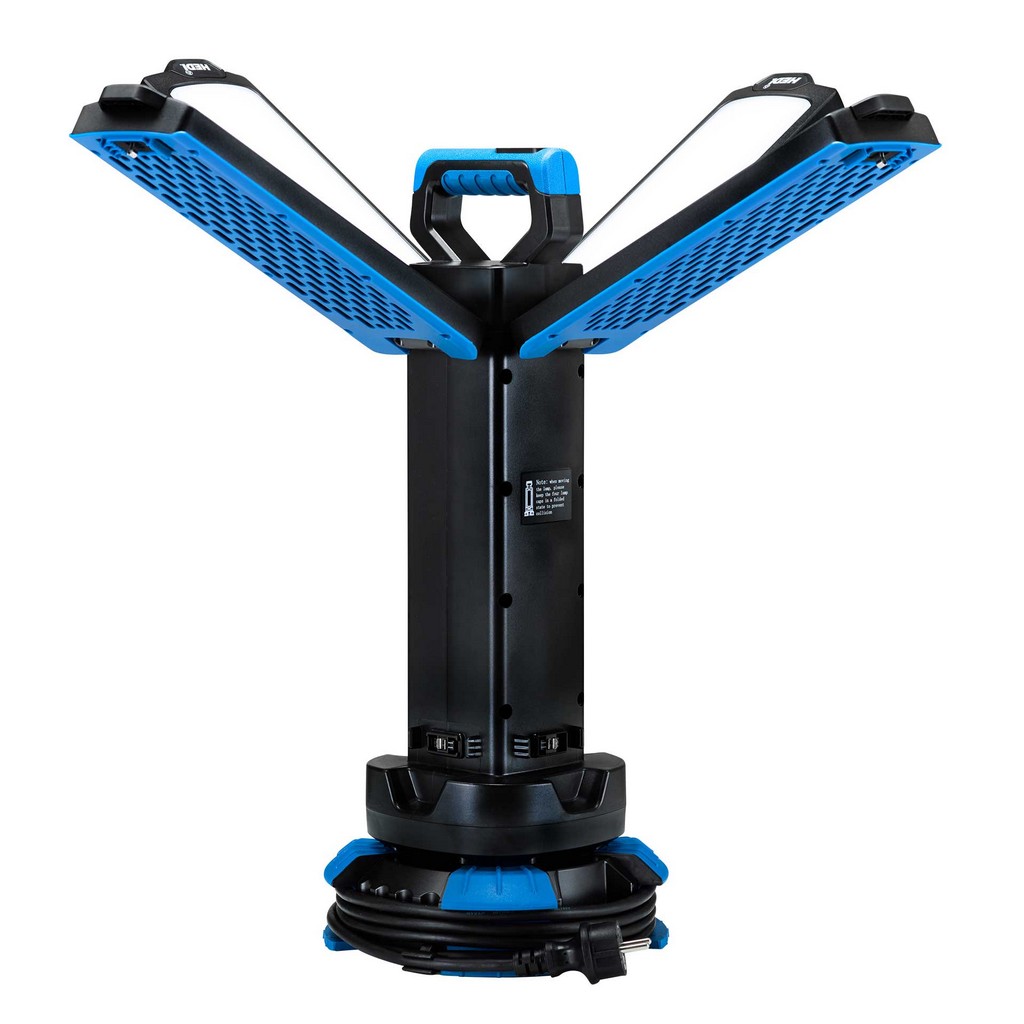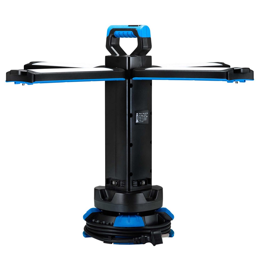 - in schwarz/blau mit vier drehbaren Lichtflügeln mit je 6.000 Lumen und einer Lichtfarbe von 6.500 Kelvin und einem CRI größer/gleich 80