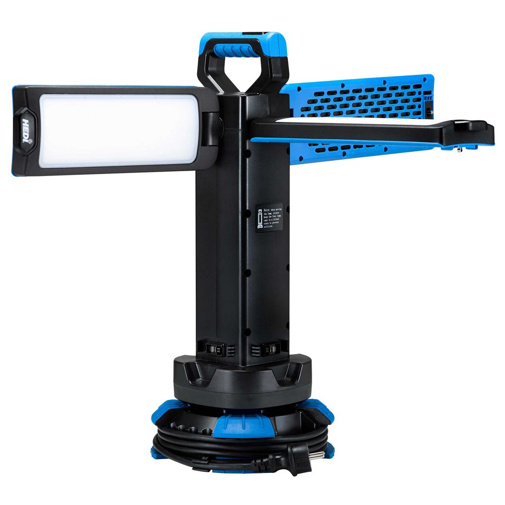 - In den Fuß der Arbeitsleuchte ist eine Vorrichtung zum Aufwickeln der circa 3 Meter Anschlussleitung des Typs H07RN-F 3G1,0 integriert