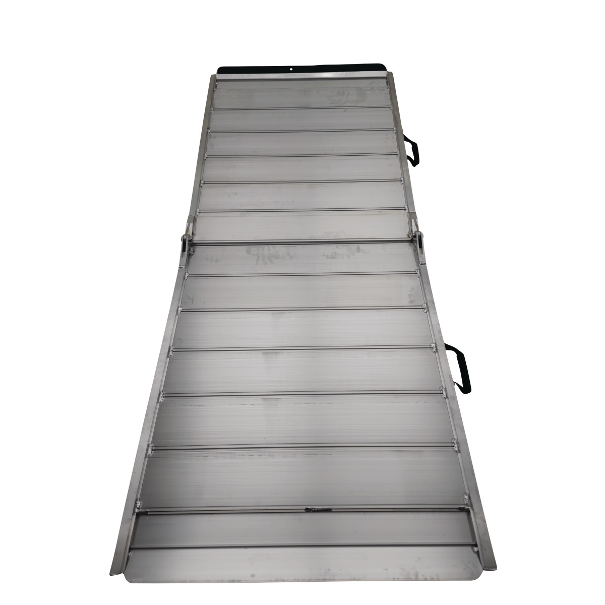Praktische Klappkonstruktion vereint Robustheit und Funktionalität Zusammengeklappt misst die Rampe etwa 119 cm in Länge und 13,5 cm in Höhe Ergonomische Tragegriffe für maximalen Komfort und einfachen Transport Rand sorgt für Sicherheit beim Verladen Abgeflachte Auflage vereinfacht das Beladen Geriffelte Trittoberfläche sorgt für sicheren Halt Es ist keine Fahrzeugmodifikation erforderlich Geeignet für Motorrad, Trolley, Rollstühle, Fracht und Kompaktmaschinen