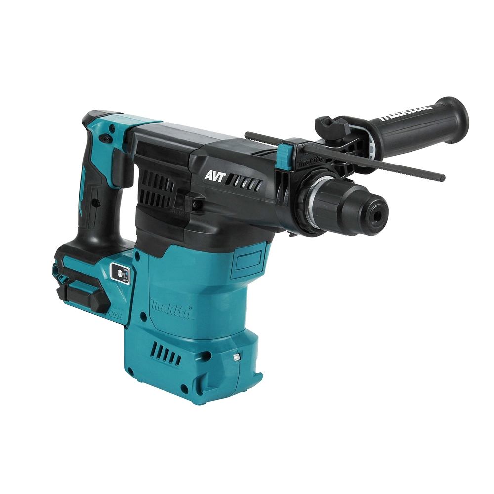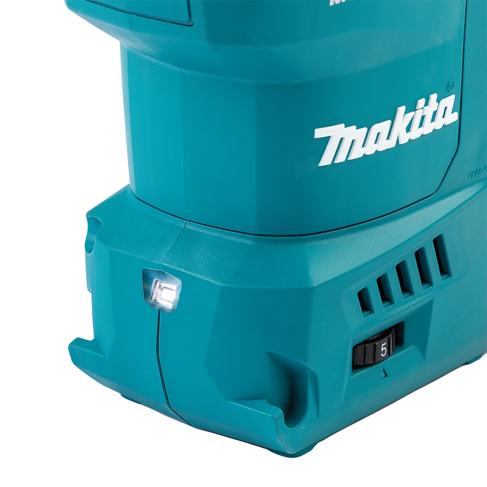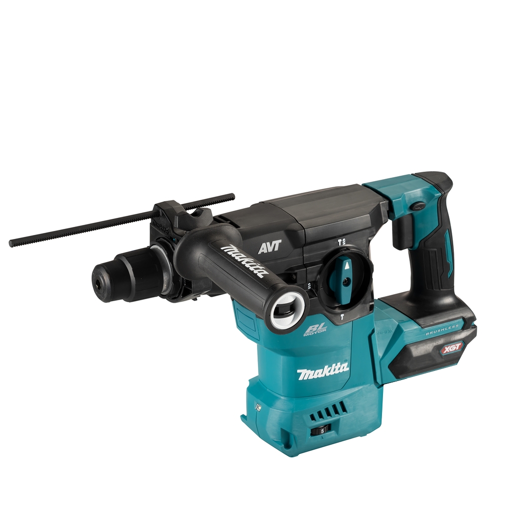 Leistungsstarker 40V max. Akku-Kombihammer mit SDS-PLUS-Werkzeugaufnahme. Geeignet zum Bohren, Hammerbohren und Meißeln. Die Drehzahl kann über ein Drehrad eingestellt werden. Die Einzelschlagstärke beträgt 3,9 J, die max. Bohrleistung in Holz beträgt 32 mm, in Beton 30 mm. Für staubfreies Arbeiten kann optional die Staubabsaugung DX10 aufgesetzt werden.