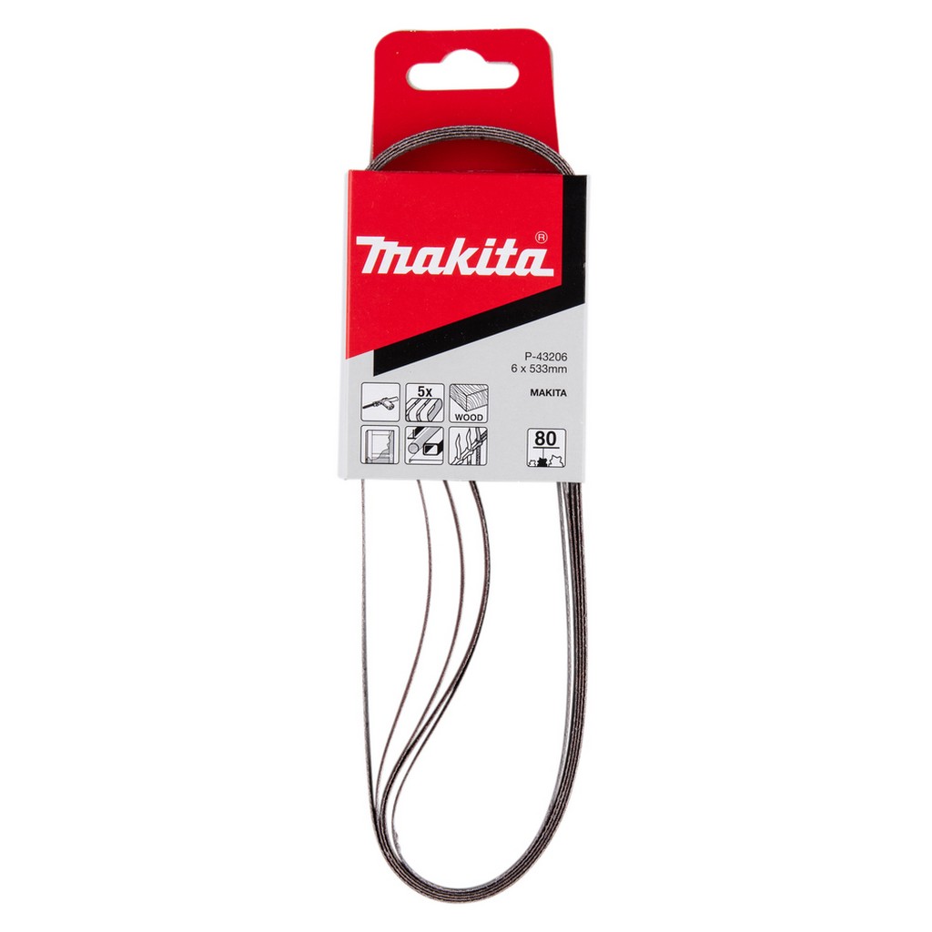 Makita Schleifband 6 x 533 mm K80 5 Stück für Holz und Metall P-43206