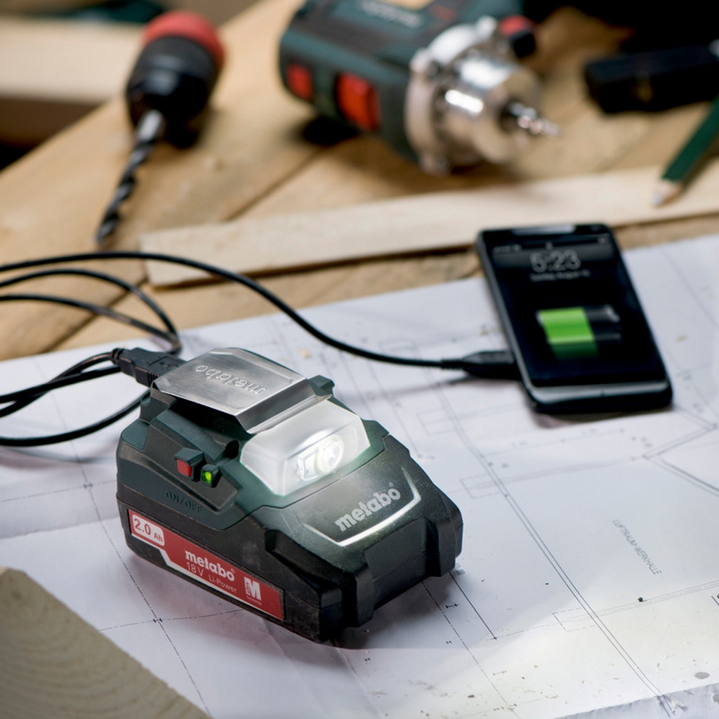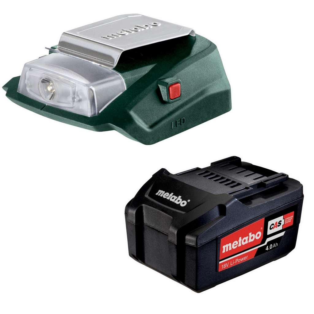 Varianten-ID Metabo Akku 18 V 4,0 Ah Li-ION Li-Power + Metabo USB Akku Power Adapter PA 14,4 - 18 V mit LED Licht