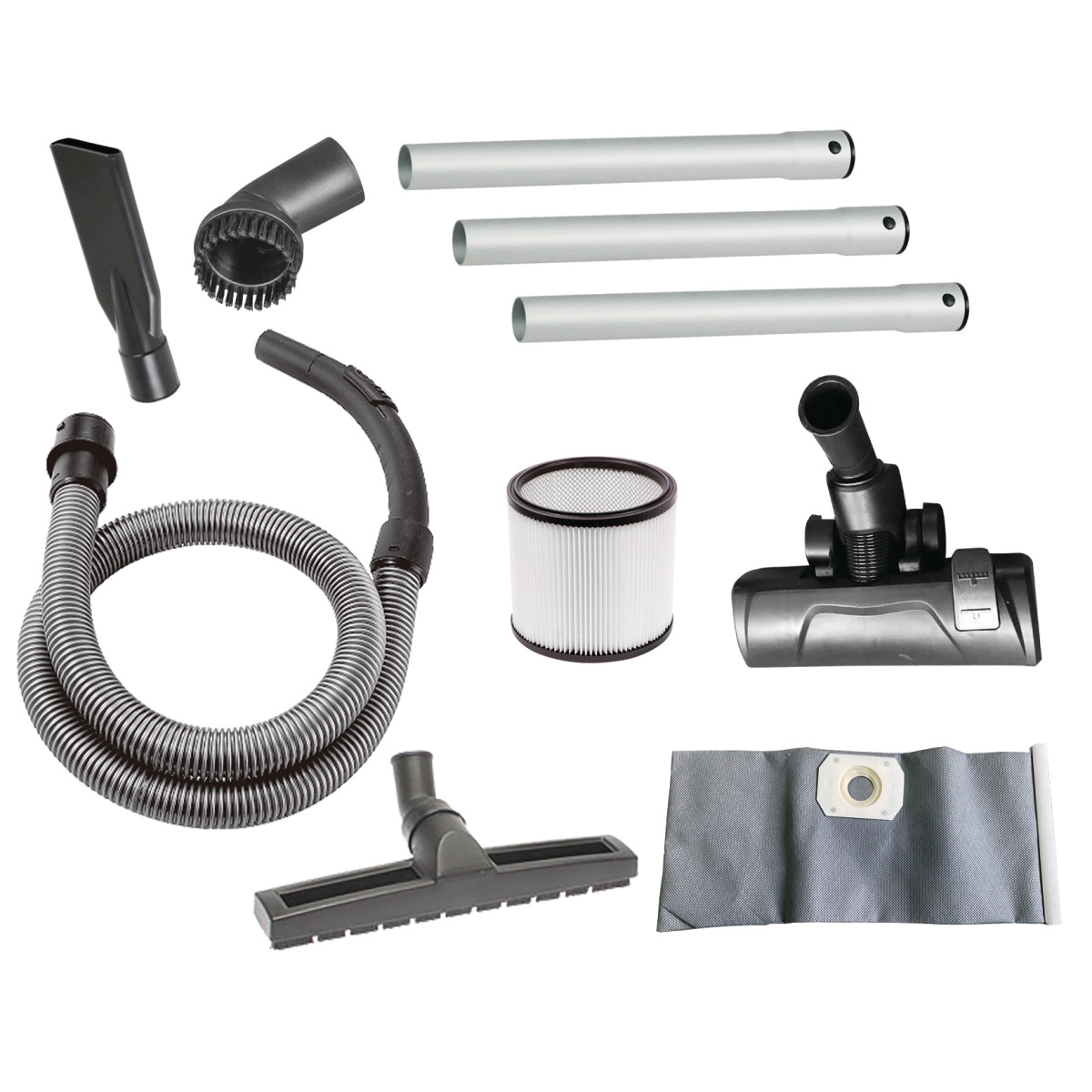 Integrierte Steckdose zum Anschluss von Elektrowerkzeugen Anlaufautomatik beim Einschalten eines angeschlossenen Elektrowerkzeugs Auslassventil am Behälter für einfaches Entleeren von Flüssigkeiten Manuelle Filterabreinigung für freie Filter und gleichbleibend hohe Saugkraft Inklusive dreiteiligem Aluminium Saugrohr Blasfunktion zum Reinigen von schwer erreichbaren Lücken Praktische, verstellbare Halteklammern zum sauberen Verstauen des Kabels Wiederverwendbare Filterbeutel im Lieferumfang schonen die Umwelt