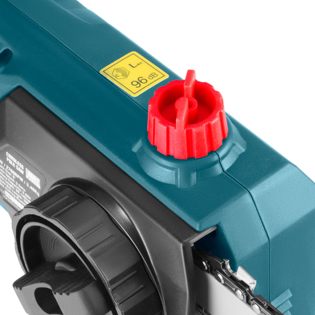 - Automatisches Schmiersystem reduziert die Reibung zwischen Schwert und Kette und ermöglicht ein müheloseres und saubereres Schneiden.