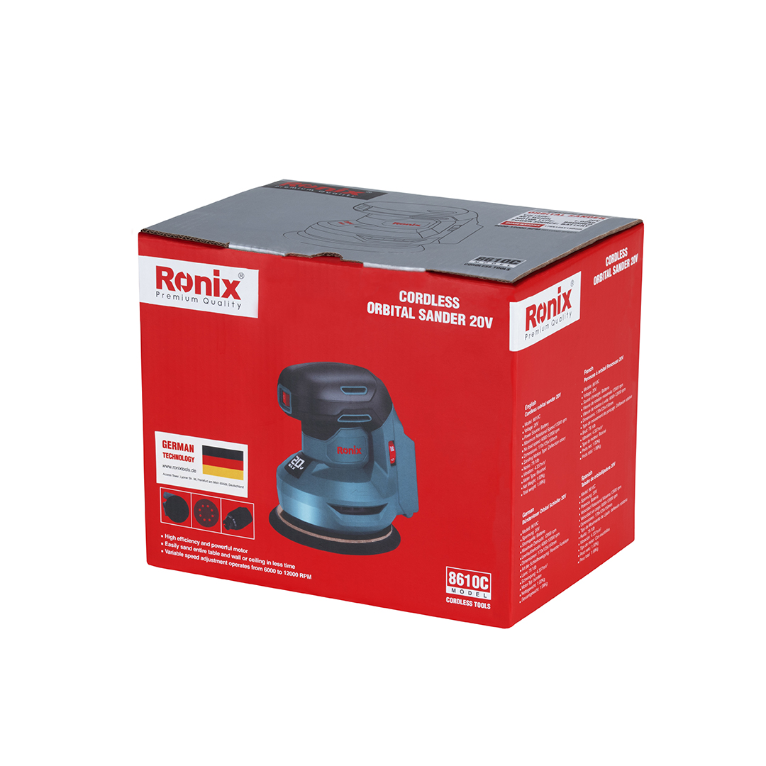 • Erfahren Sie mehr über den Ronix 8610C Akku-Exzenterschleifer in den folgenden Abschnitten