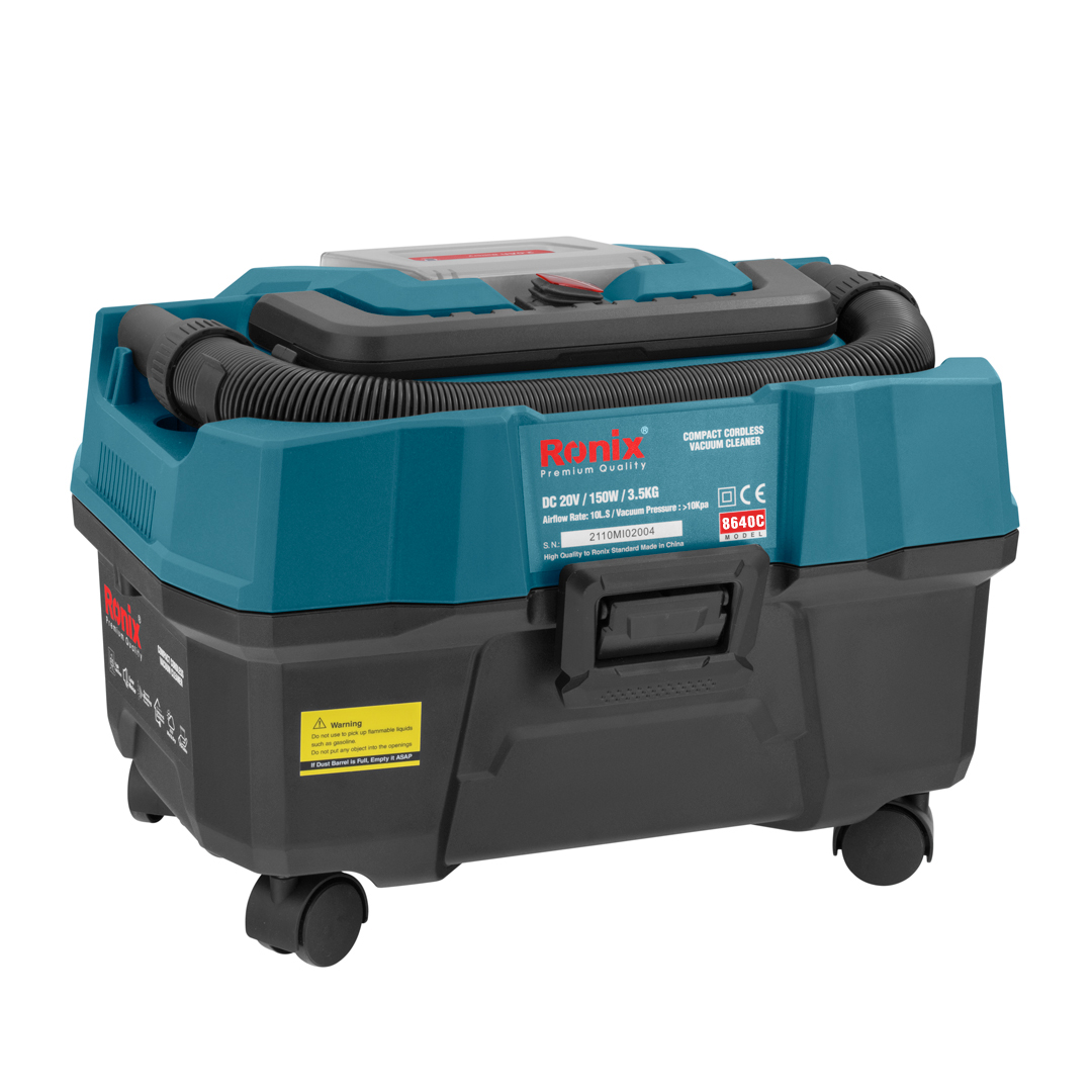 • Der robuste 150-Watt-Motor mit 20 Volt Gleichstrom (DC) des Ronix 8640C Akku-Handstaubsaugers macht ihn zur perfekten Wahl für die Reinigung von trockenem und nassem Schmutz