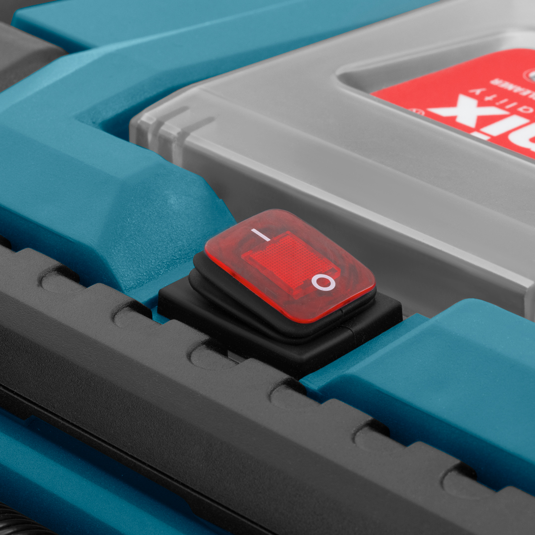 • Das Gerät besitzt einen 15-Liter-Behälter für die Schmutz- und Staubaufnahme und ist mit einer Kunststoffabdeckung zum Schutz des Akkus ausgestattet