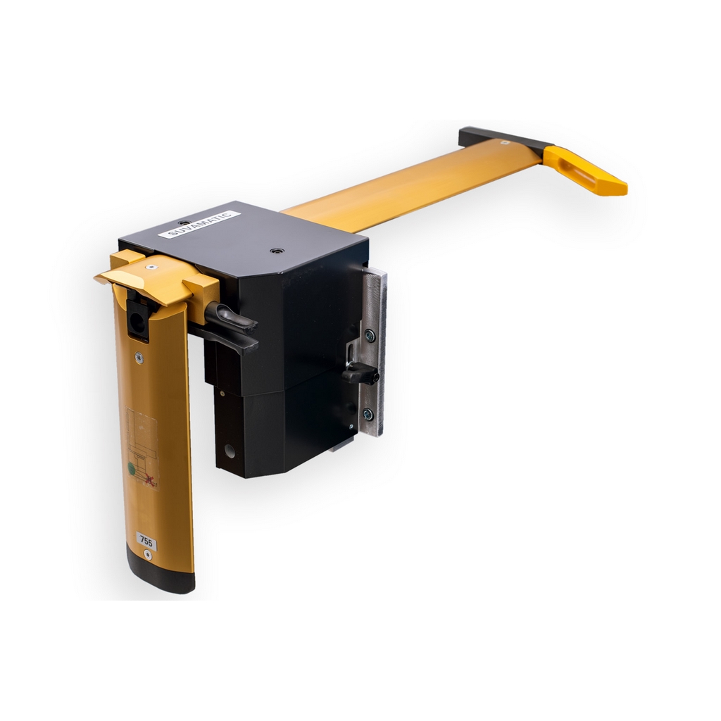 Die zweiteilige, klappbare SUVAMATIC Hobelschutzvorrichtung ist eine unentbehrliche Sicherheitseinrichtung zum Abrichten und Fügen von Werkstücken auf Abrichthobelmaschinen beliebiger Hersteller. Dieser Brückenschutz, mit dem der komplette Hobelbereich der Messerwelle verdeckt werden kann, lässt sich über einen Scharnierverschluss schnell und bequem abklappen. Durch den Druckschuh, der auf der Seite des Abricht- Fügeanschlages mit einem umlegbaren Einlaufschnabel versehen ist, lässt sich ein sicherer und praktischer Werkstück-Einlauf bewerkstelligen.