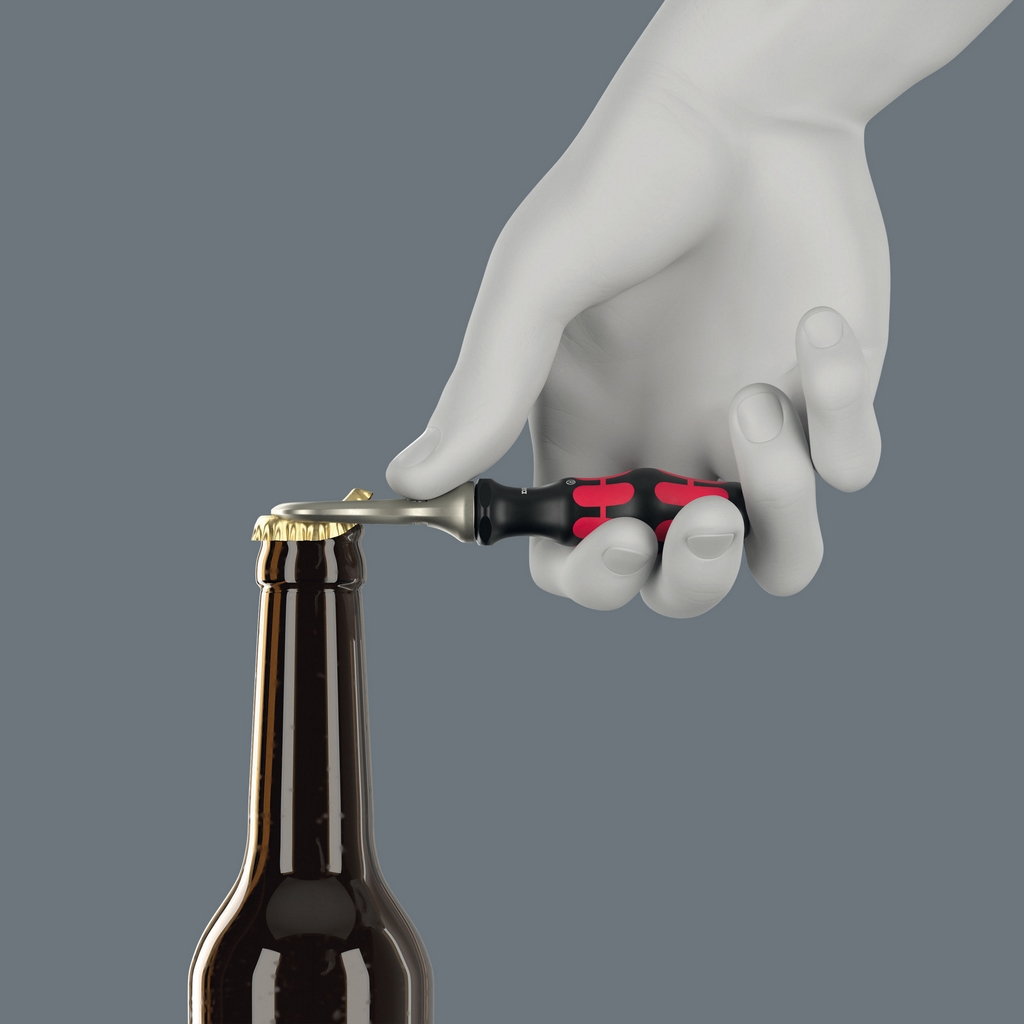 Auf 28 Überraschungen darf sich der der Beschenkte/ die Beschenkte freuen: 15 Schraubendreher, darunter 2 Schlitzwerkzeuge für VDE, 2 Stubbys, 3 Micro Werkzeuge für die Feinmechanik und einen Schraubmeißel mit Schlagkappe und durchgehender Klinge. 1 Bithalter mit Quergriff für ¼" Bits und 3 lange Bits (89 mm) runden den Inhalt ab. Der Quergriff liegt gut in der Hand und erlaubt die Übertragung hoher Drehmomente. Die beiden Schraubkrallen halten Schrauben sicher auf dem Werkzeug.